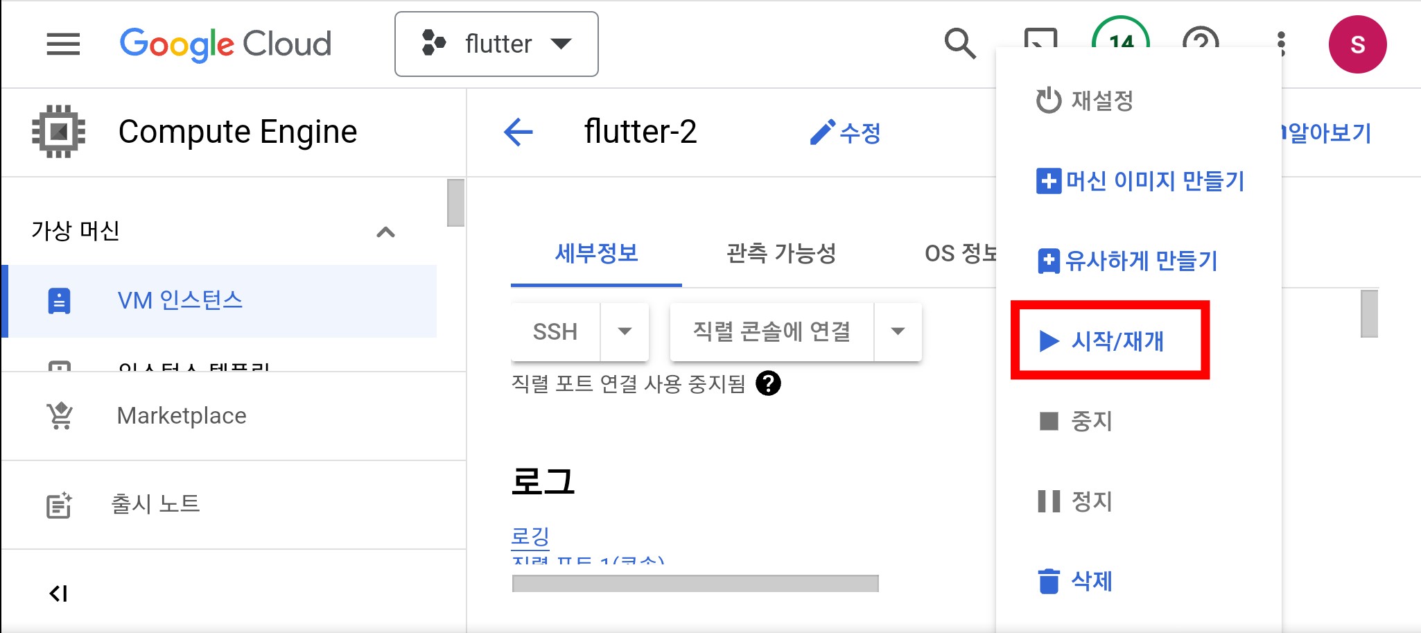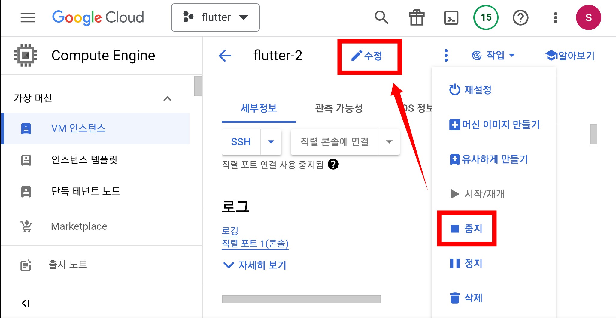 인스턴스를 중지 한 뒤 '수정' 버튼을 클릭합니다.