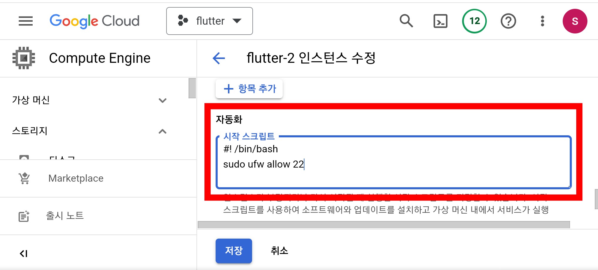 항목 중 '자동화' 부분에서 '시작 스크립트'에 다음의 내용을 입력합니다.