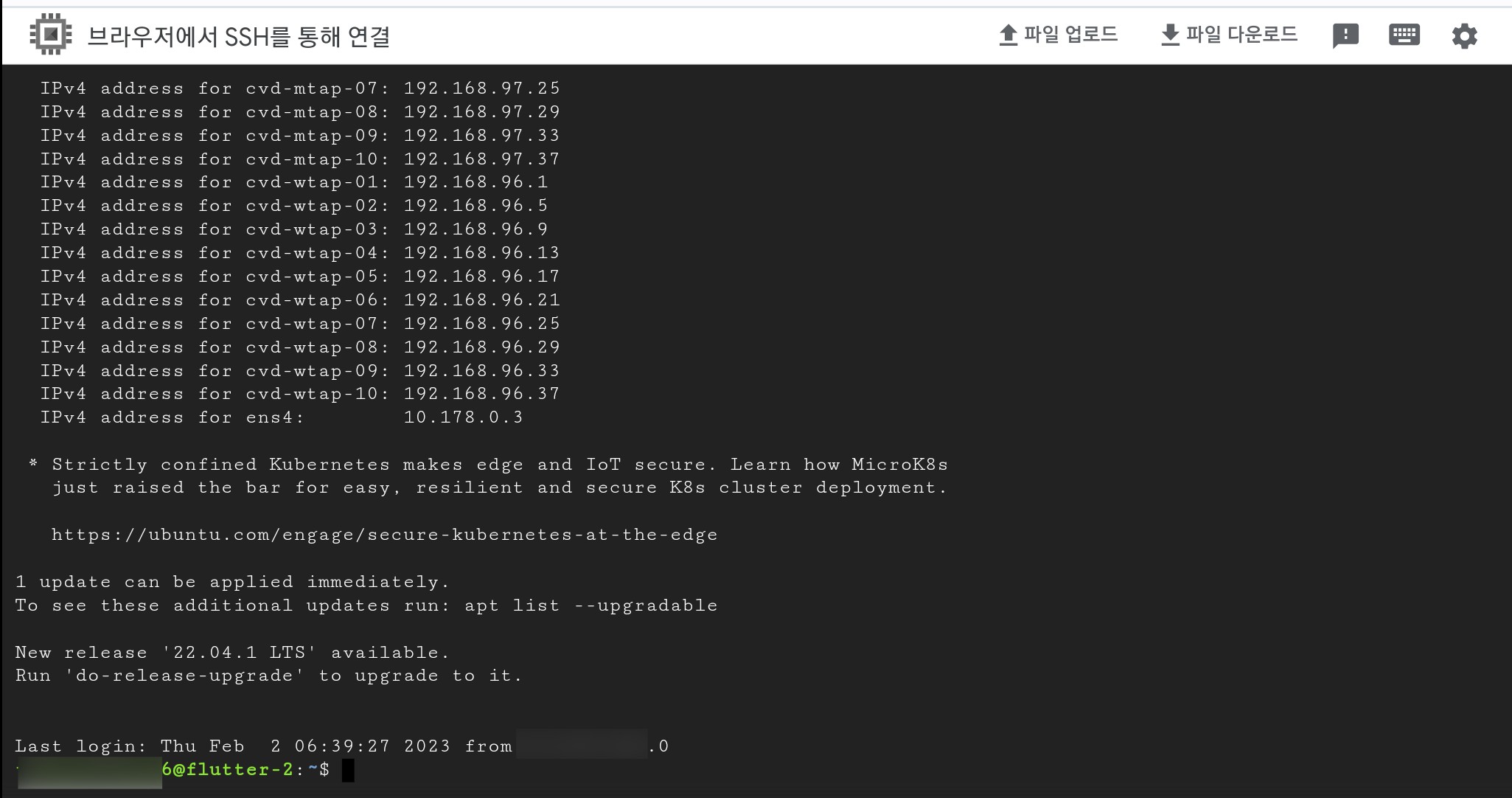 이제 정상적으로 SSH 연결이 된 것을 확인할 수 있습니다.